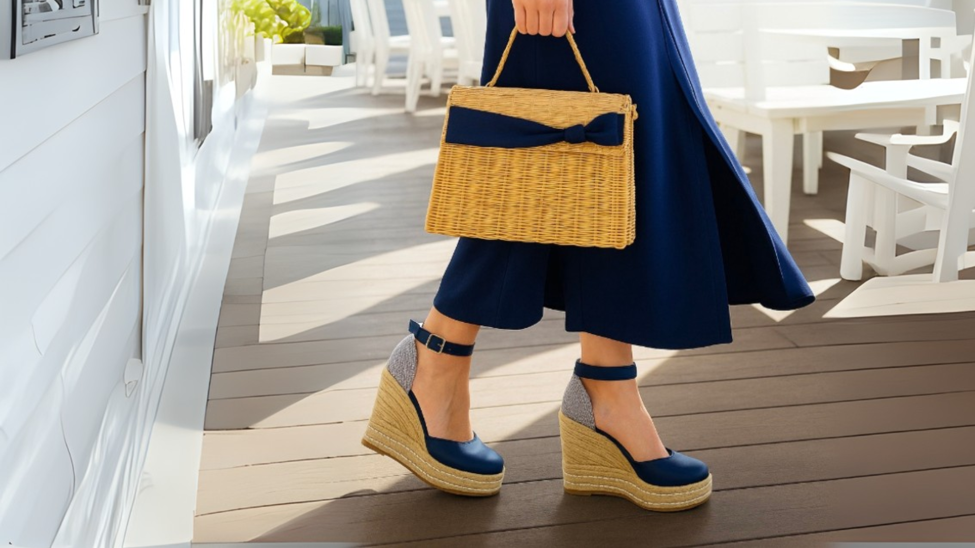 - Vestidos de lino, bolsos tejidos de gran tamaño y alpargatas con ó sin cordones.