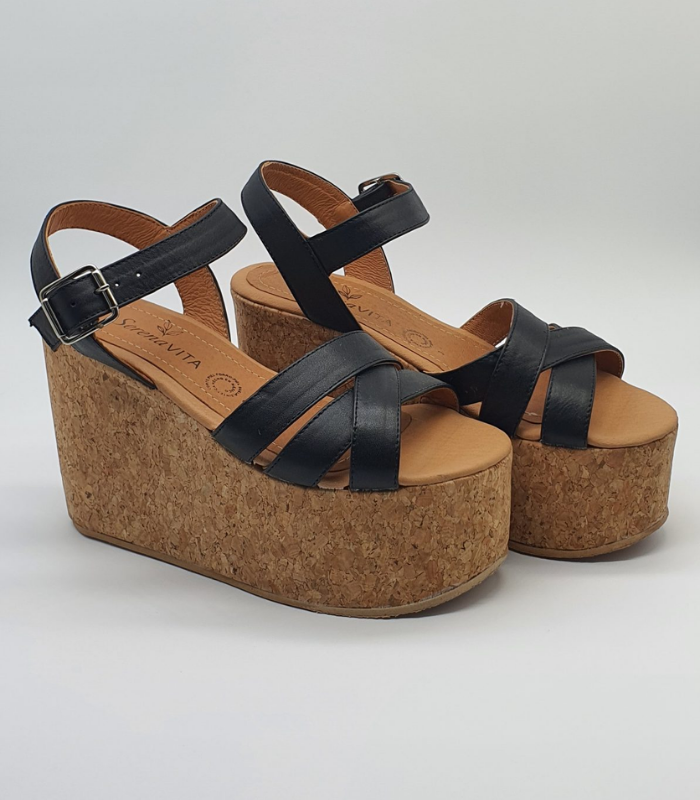 Handcrafted in Guadalajara, the Aurora Negro wedges combine sleek design with handcrafted soles and soft interiors — offering elegant height, versatile comfort, and Mexican artistry in every step.