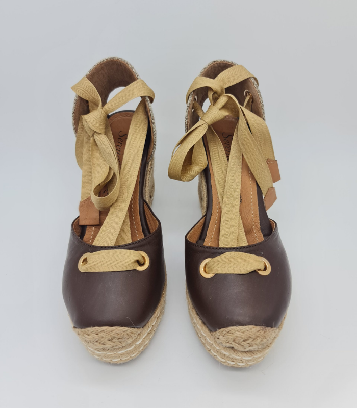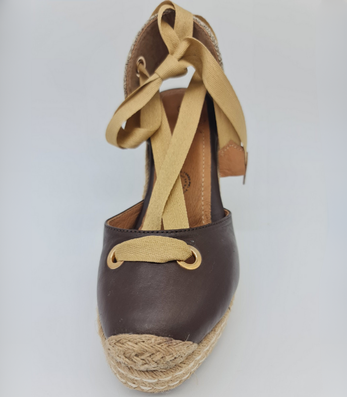 Wedge-heel sandal featuring a rich chocolate-toned braid and artisanal finish. Designed for women who appreciate natural tones, comfort, and handcrafted beauty.